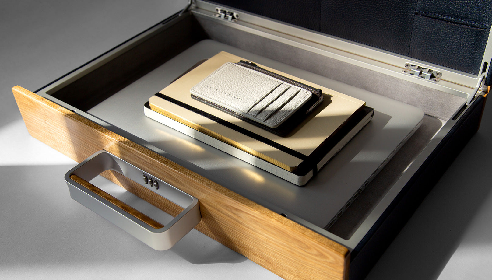 Minimalist aesthetics, advanced engineering and contemporary craftsmanship come together in this cutting-edge business bag. Handmade from premium materials, including a carbon fiber and anodized aluminum frame and premium leather sourced from a family-owned tannery in the southwest of France, the Mackenzie is an embodiment of excellence. This dedication is evident in every last detail, from the sleek handle with tasteful leather accents to the protective lock.