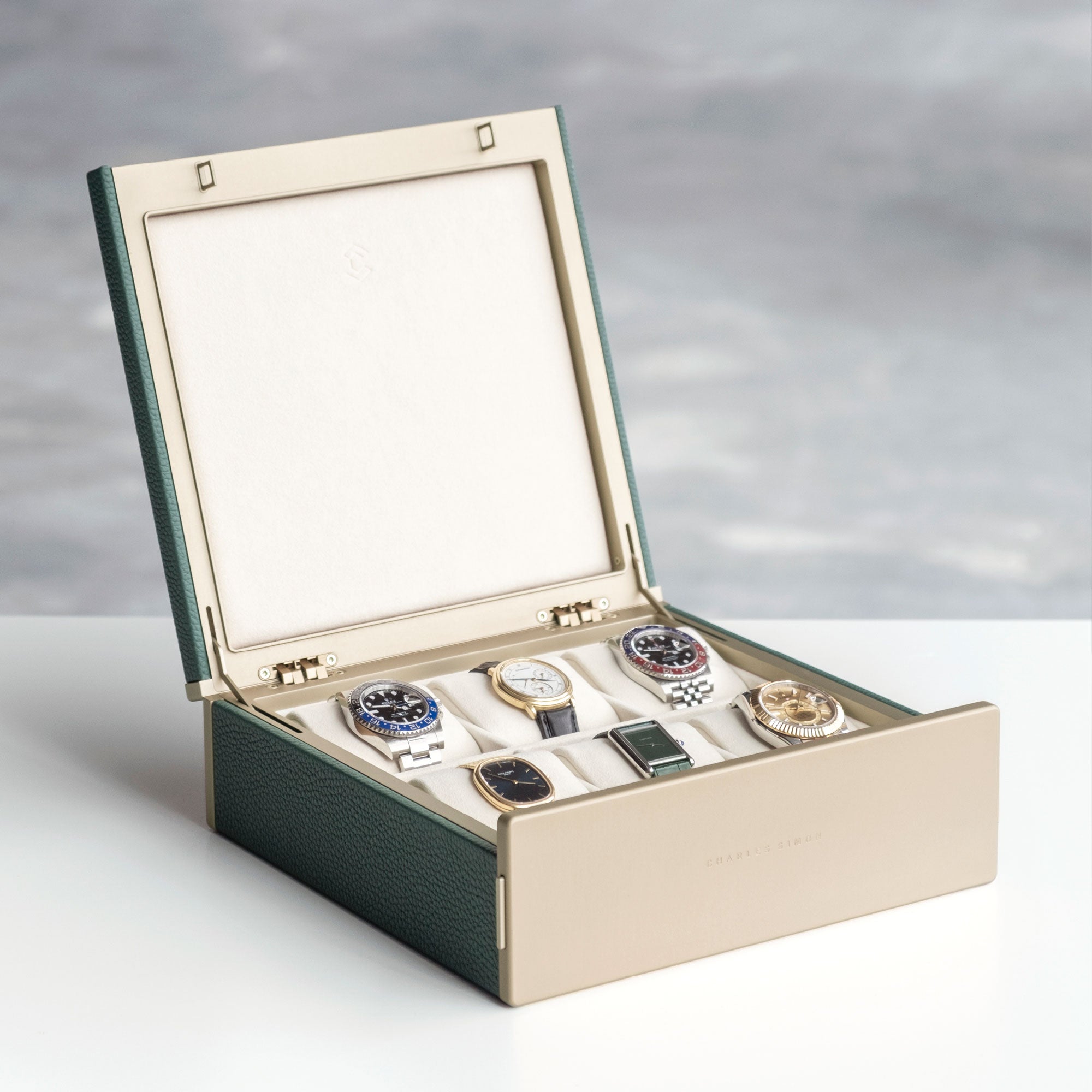 SPENCE 6 COFFRET À MONTRES - EMERAUDE / CHAMPAGNE