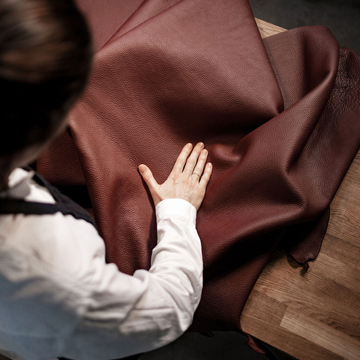 Taurillon leather is esteemed for its soft texture and remarkable resilience. The cattle are raised for approximately 12 months and provide leather with a higher fibre density, making it a particularly durable choice, ideal for objects that are designed to last.
