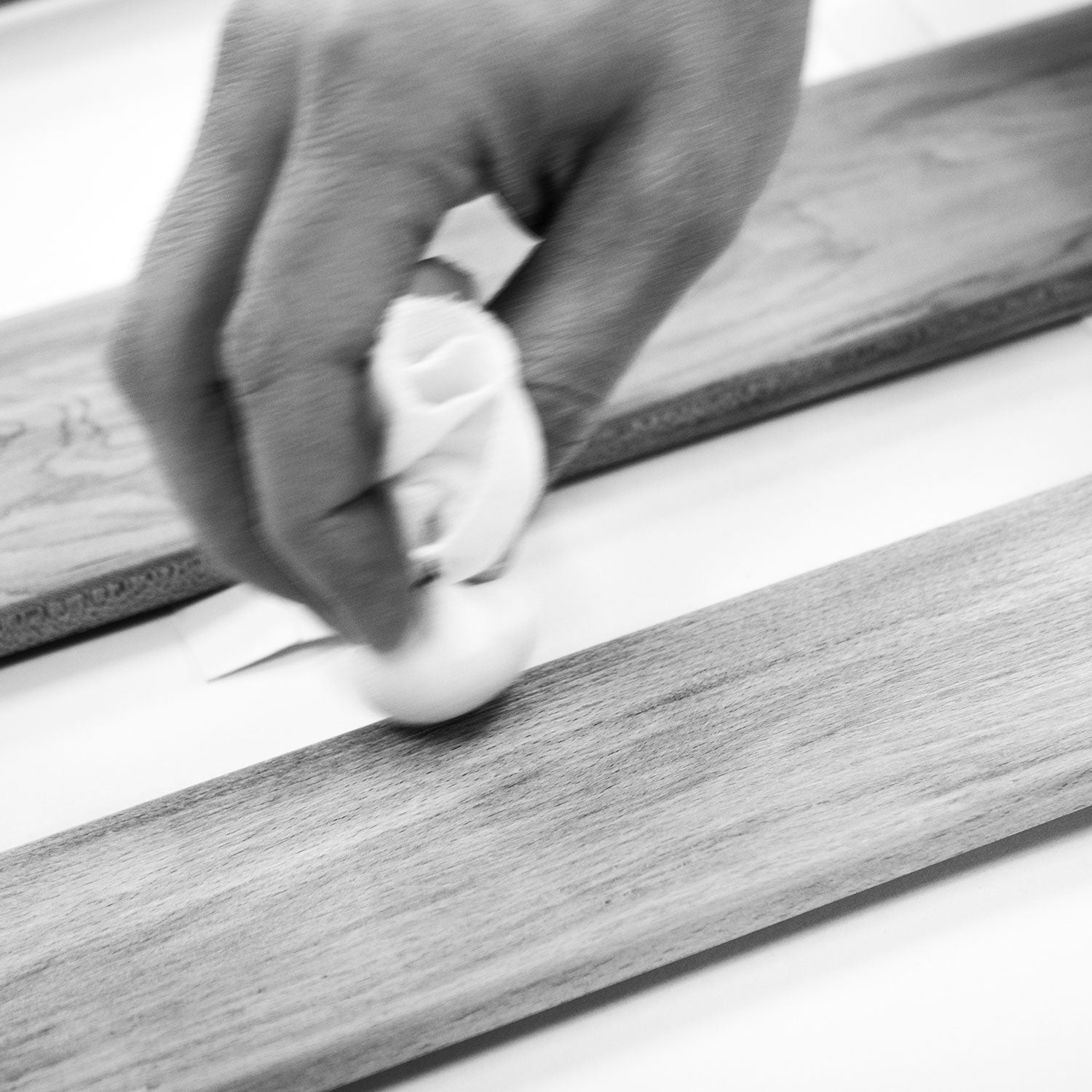 In this stage, individual components are joined to form a unified whole. Materials are glued, sewn, and edge-finished by hand with exacting care, ensuring an elegant finish and lasting refinement. Every step—measured, deliberate, and methodical—reinforces our commitment to excellence down to the detail.