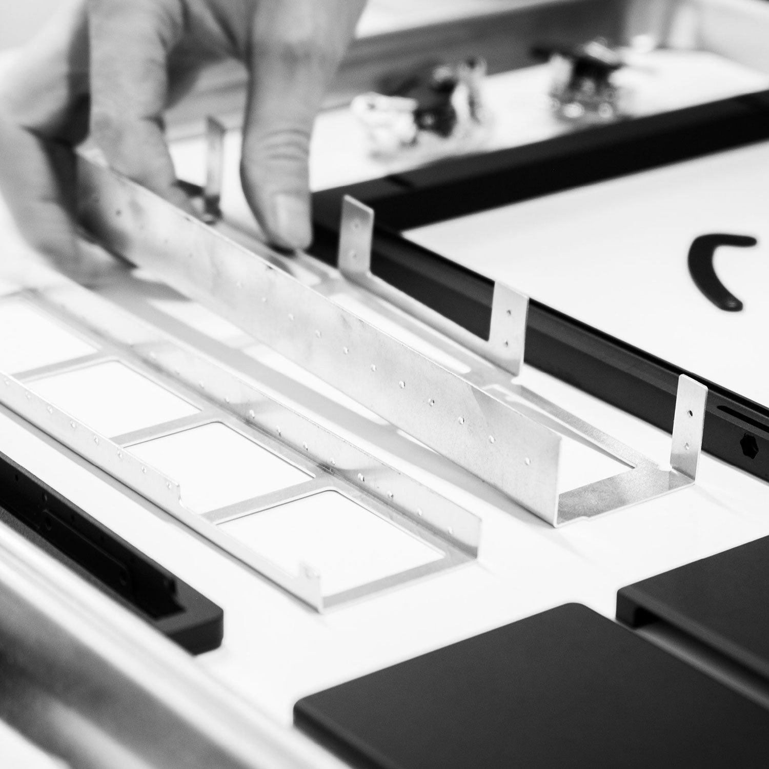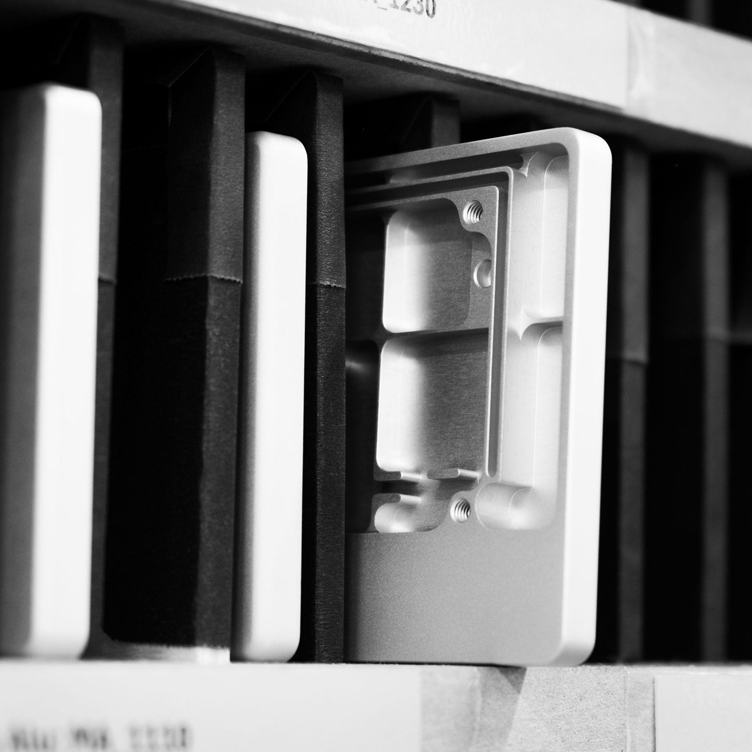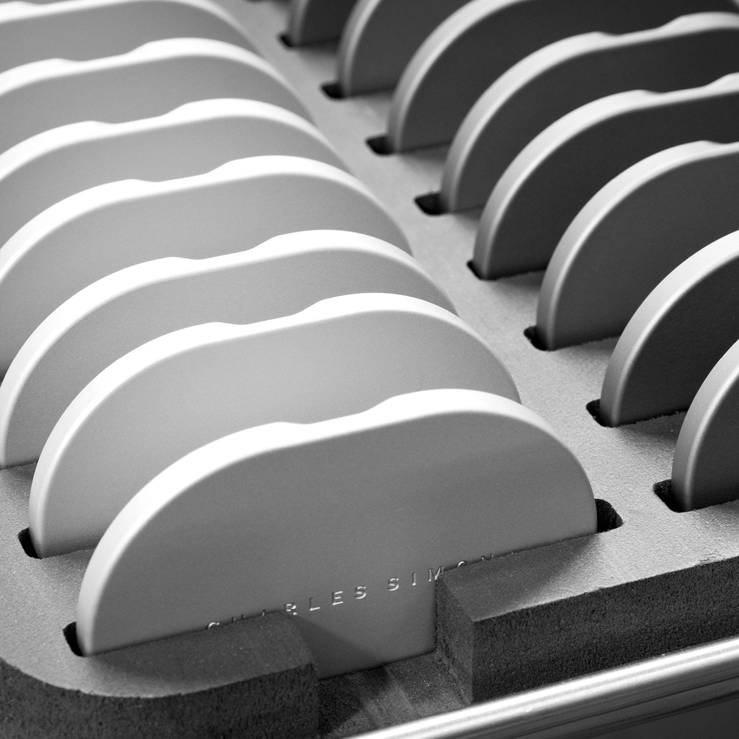 The mechanical elements within a Charles Simon piece—from hinges to closures and our protective locking system—are all developed, engineered, and assembled in-house. Made from aerospace grade anodized aluminum and carbon fiber, the components making up the structure of our accessories are precisely machined and and assembled with exact alignment. The result is a subtle sophistication: mechanisms that operate with seamless ease, engineered not to be seen, but to be felt in their flawless function.