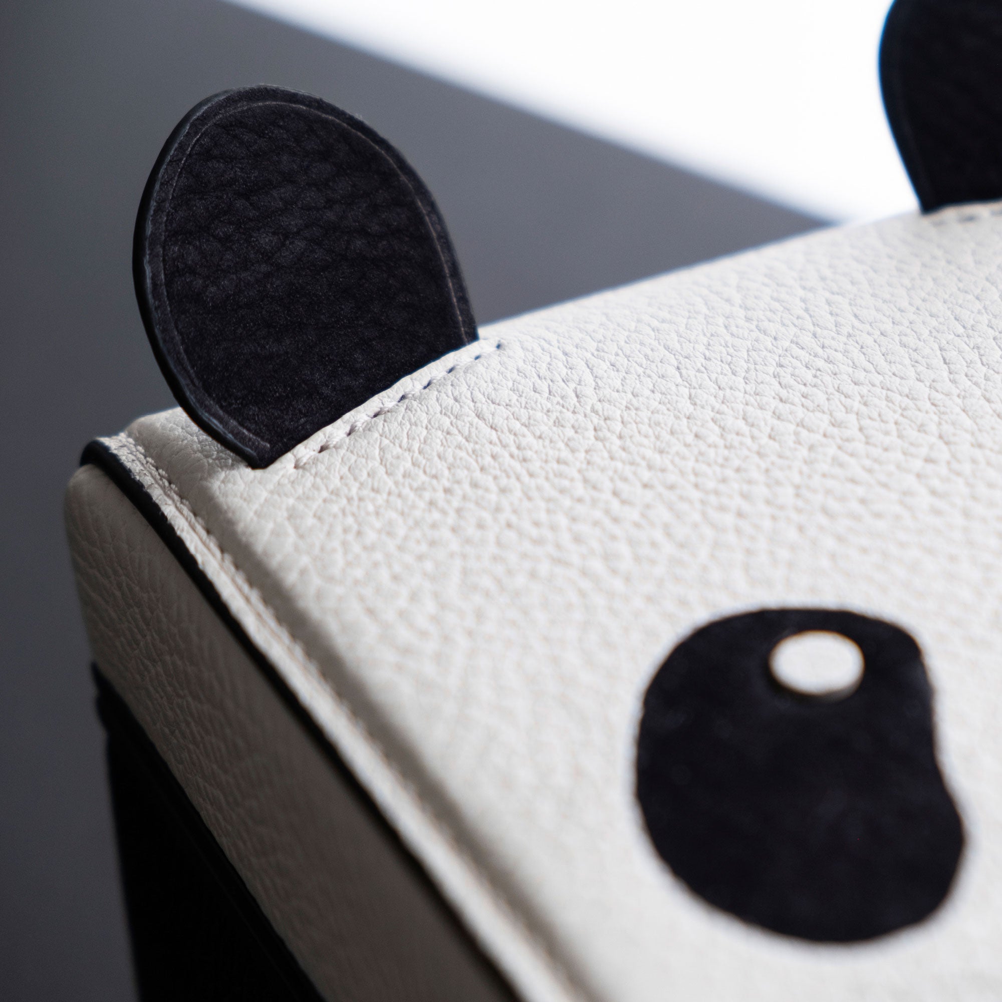 The Eaton 1 Special Edition Panda Watch case is an homage to the joy of watch collecting, infusing every glance at your timepiece with irresistible delight. The adorable panda design is brought to life through meticulous craftsmanship, including intricate leather inlays and embossed facial features. Soft Alcantara lining and a removable watch cushion allow this panda to charmingly protect and display your favorite watch.