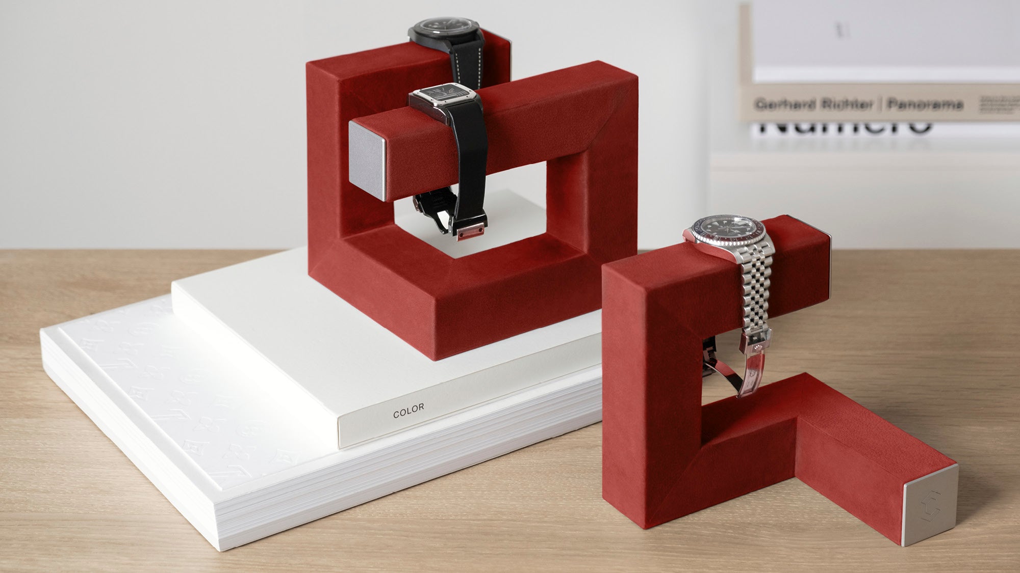 Customize your watch stand to perfectly complement your home and timepieces through our Personalization service. From bespoke nubuck leather colors, novel combinations with different shades of anodized aluminum and engravings on the aluminum plaque, there are endless ways to tailor this sculptural piece according to your personality and interior design style. A personalized watch stand will not only render your daily routine of putting on and taking off your watch extra special, it also is a statement piece that adds a touch of bespoke elegance to your home.