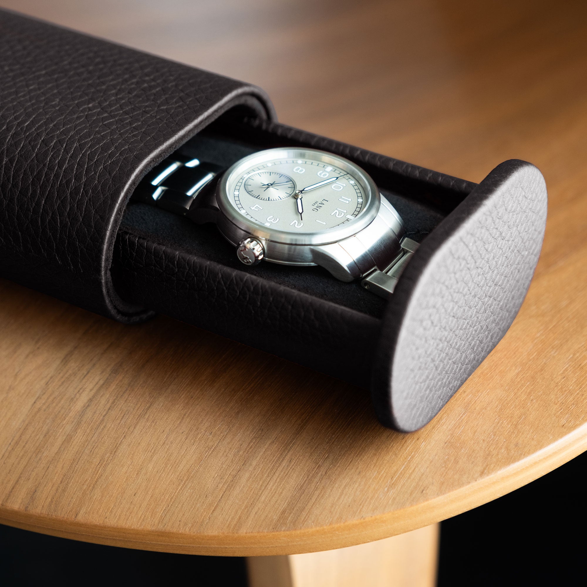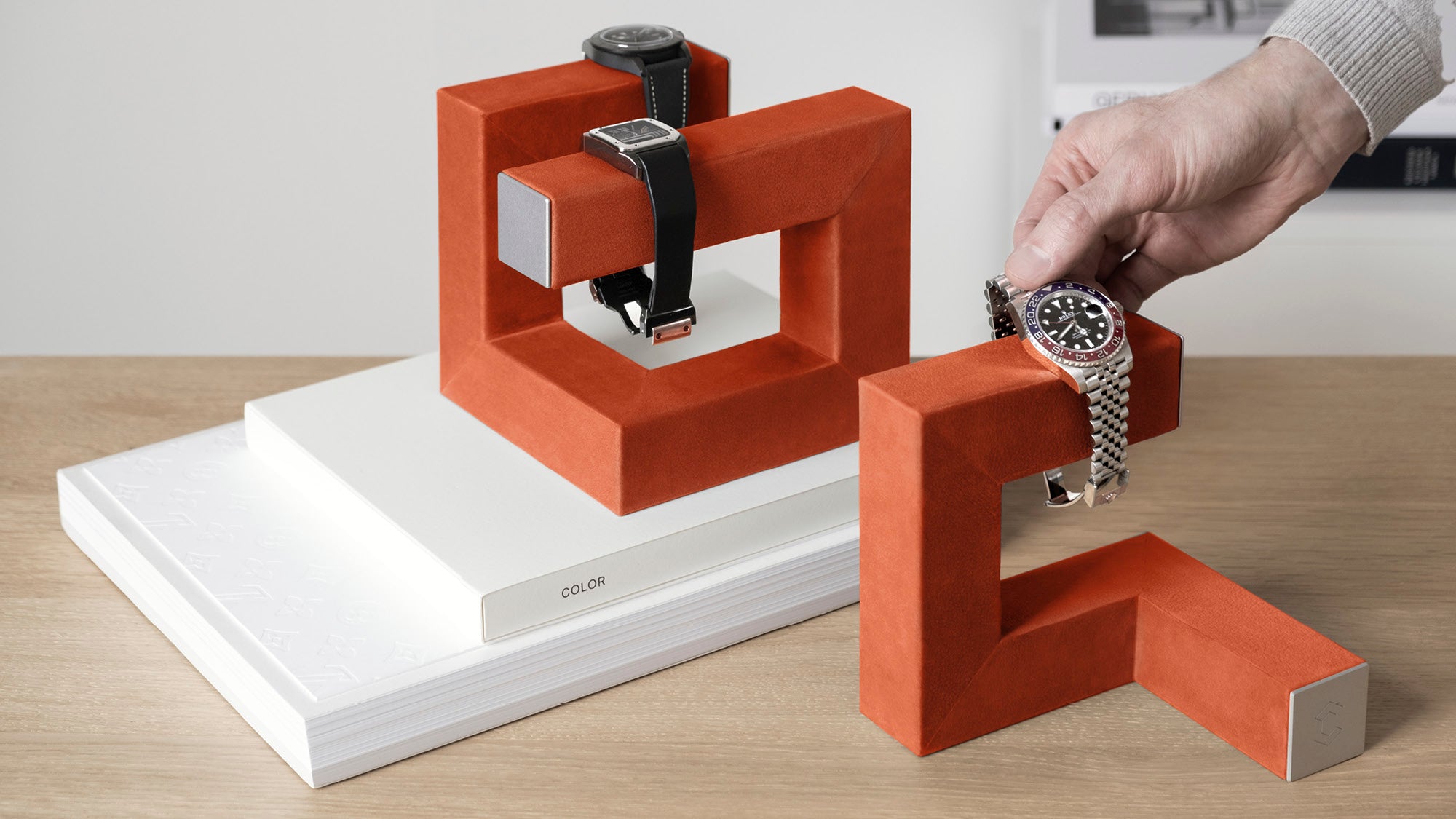 Customize your watch stand to perfectly complement your home and timepieces through our Personalization service. From bespoke nubuck leather colors, novel combinations with different shades of anodized aluminum and engravings on the aluminum plaque, there are endless ways to tailor this sculptural piece according to your personality and interior design style. A personalized watch stand will not only render your daily routine of putting on and taking off your watch extra special, it also is a statement piece that adds a touch of bespoke elegance to your home.