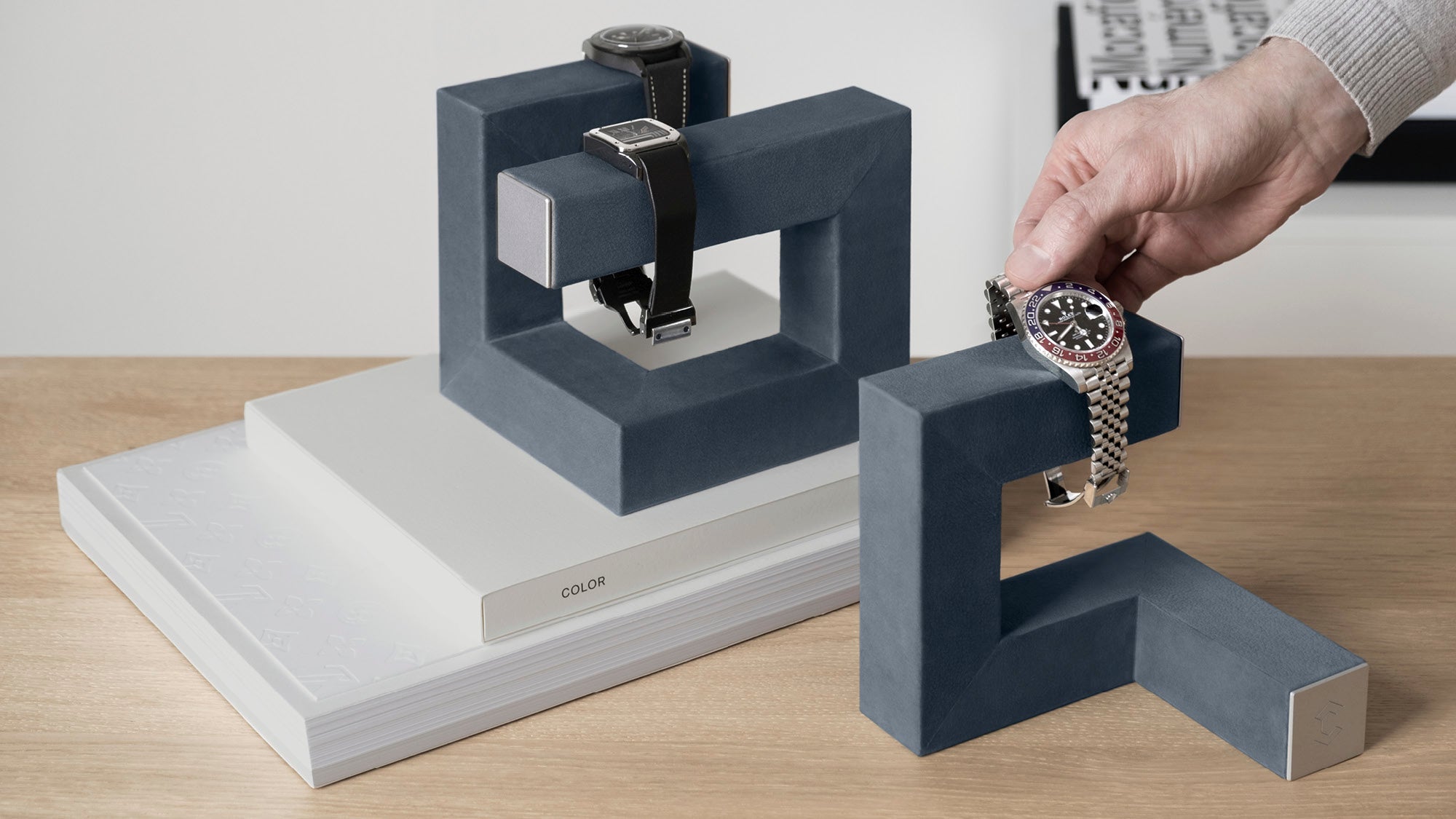 Customize your watch stand to perfectly complement your home and timepieces through our Personalization service. From bespoke nubuck leather colors, novel combinations with different shades of anodized aluminum and engravings on the aluminum plaque, there are endless ways to tailor this sculptural piece according to your personality and interior design style. A personalized watch stand will not only render your daily routine of putting on and taking off your watch extra special, it also is a statement piece that adds a touch of bespoke elegance to your home.