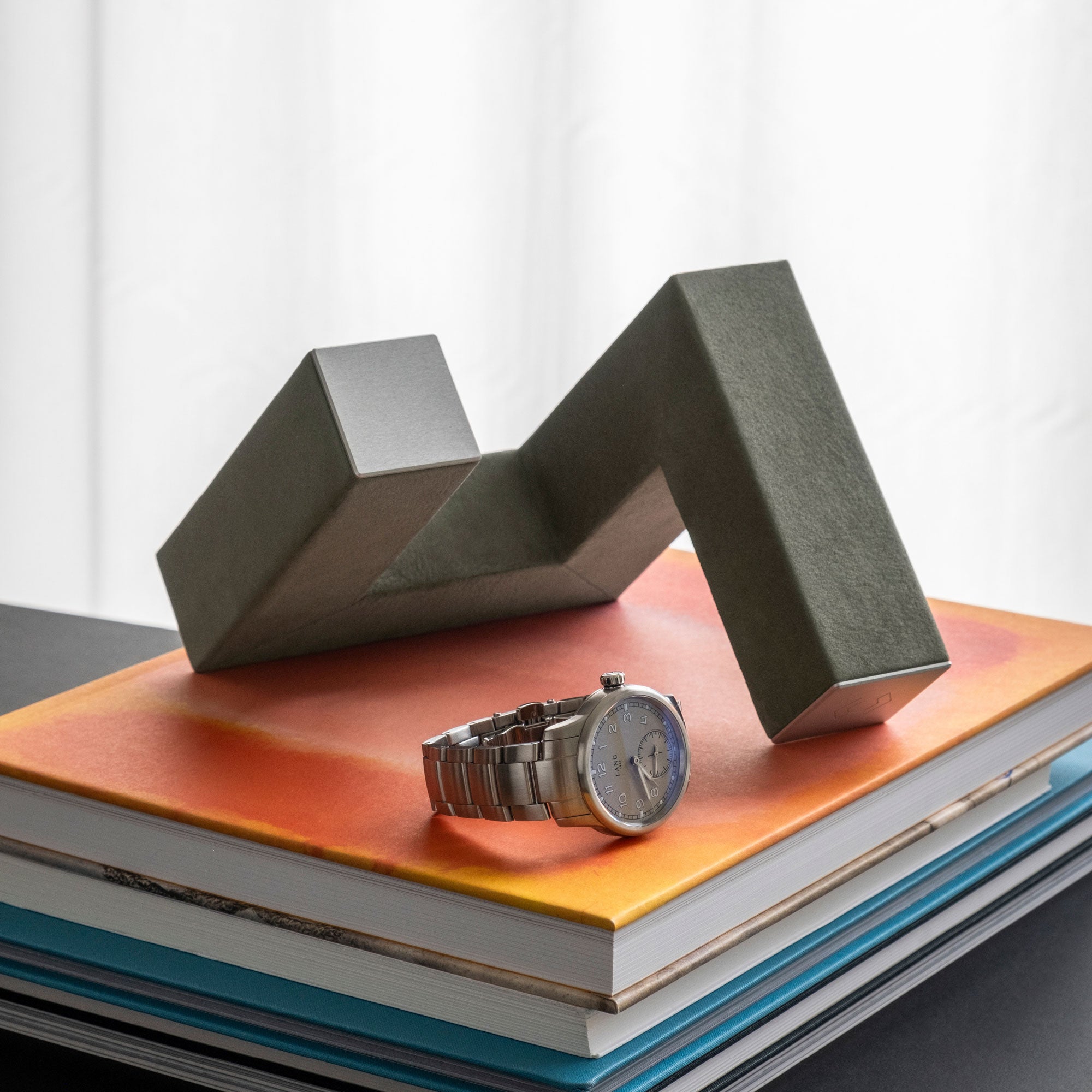 Customize your watch stand to perfectly complement your home and timepieces through our Personalization service. From bespoke nubuck leather colors, novel combinations with different shades of anodized aluminum and engravings on the aluminum plaque, there are endless ways to tailor this sculptural piece according to your personality and interior design style. A personalized watch stand will not only render your daily routine of putting on and taking off your watch extra special, it also is a statement piece that adds a touch of bespoke elegance to your home.
