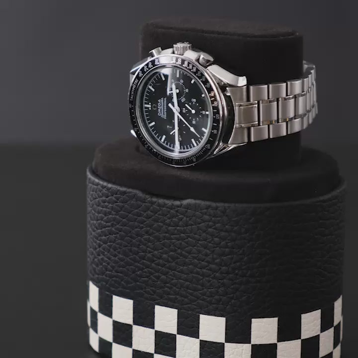 Born from the relentless pursuit of optimization, this Formula 1-inspired watch roll is honed for peak performance. The Theo is the compact and convenient way of keeping your favorite watch on the go. With multiple display positions, the watch roll transitions from protective storage to portable watch stand—quicker than a Formula 1 pit stop. Made from premium materials like French bull leather and black anodized aluminum, the Theo is handcrafted in Canada entirely in-house.