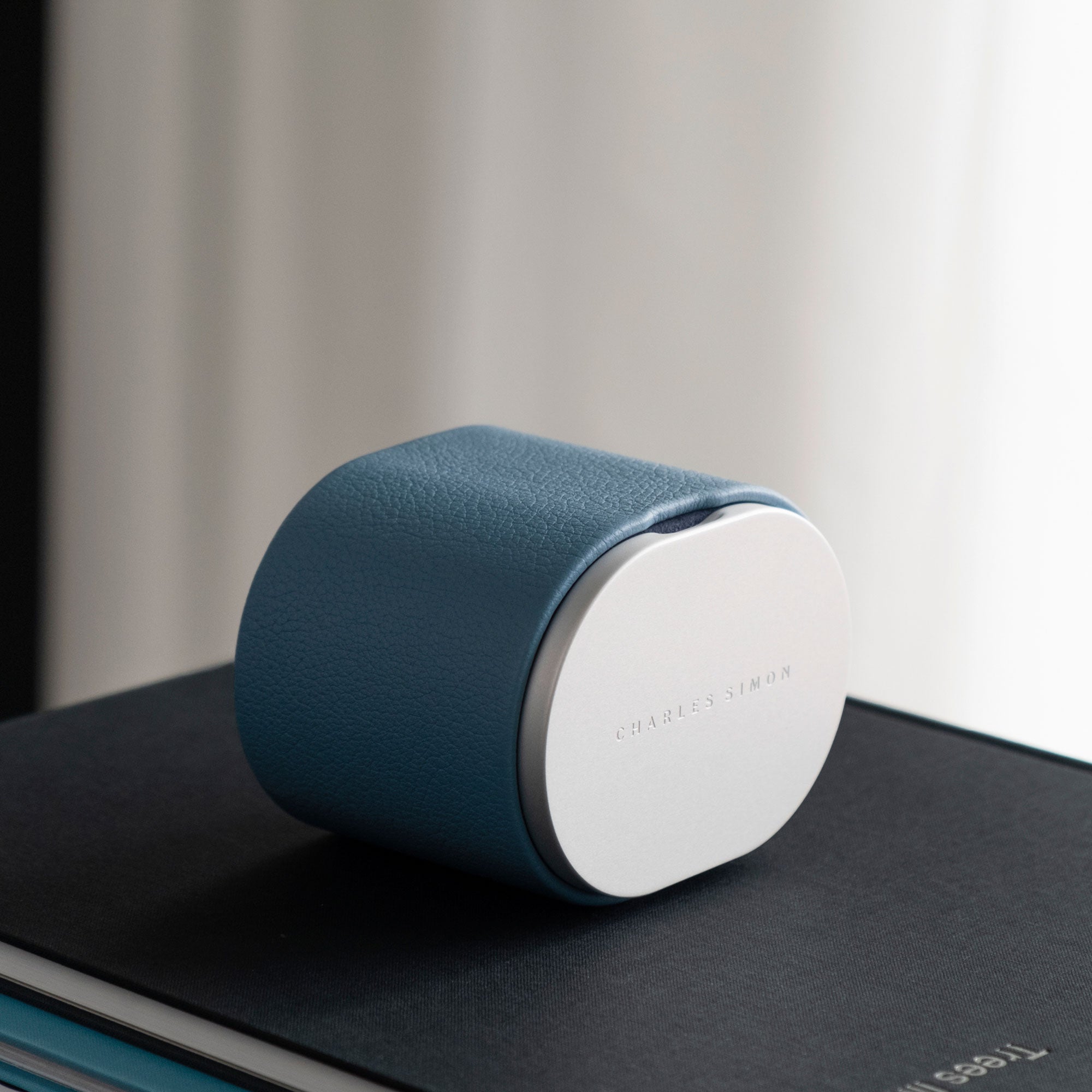 Theo is the compact and convenient way of keeping your favorite watch on the go. The watch roll quickly transforms from watch storage into a stylish display thanks to its multiple positions. The vibrant leather exterior adds a bold twist to the sleek design of this premium watch roll. Made from fine materials like anodized aluminum, young bull leather and soft Alcantara, the Theo is handcrafted in Canada entirely in-house.